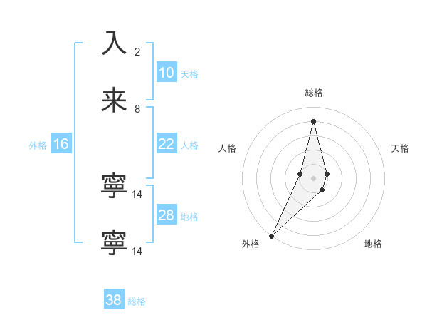 入来 寧寧さんの総格は38画の4点!