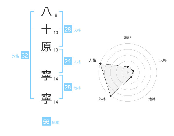 八十原 寧寧さんの外格は32画の5点!
