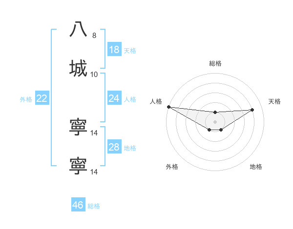 八城 寧寧さんの天格は18画の4点!