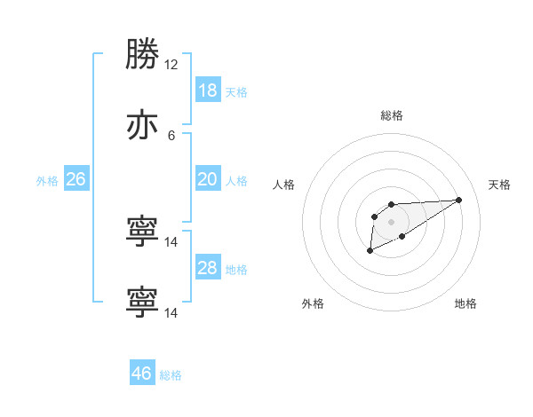 勝亦 寧寧さんの天格は18画の4点!
