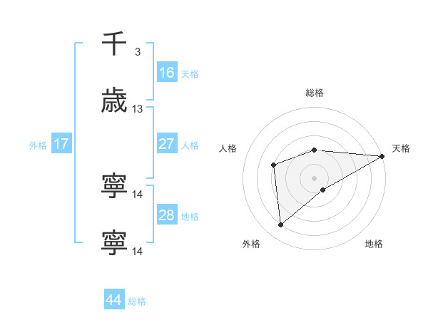 千歳 寧寧さんの天格は16画の5点!