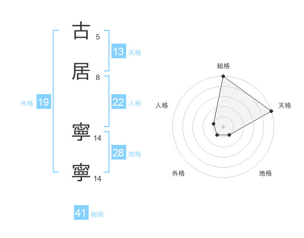 古居 寧寧さんの総格は41画の5点!