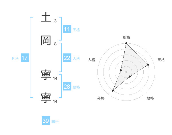 土岡 寧寧さんの総格は39画の5点!