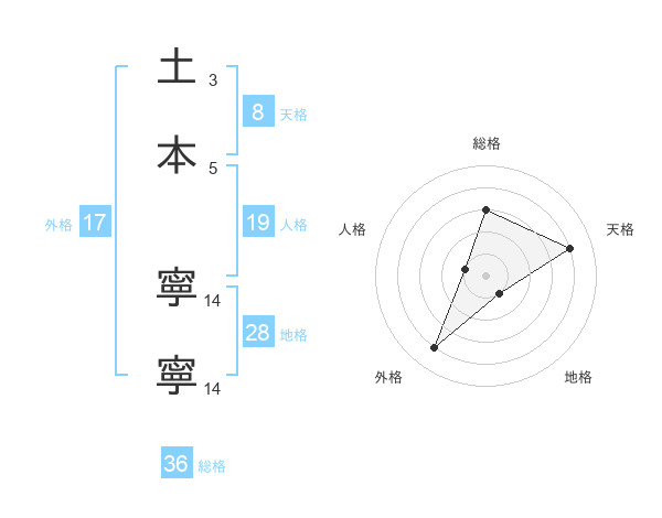 土本 寧寧さんの天格は8画の4点!