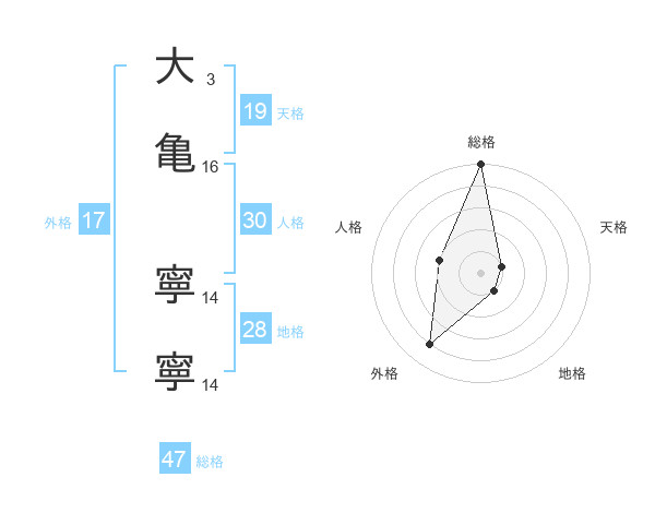 大亀 寧寧さんの総格は47画の5点!