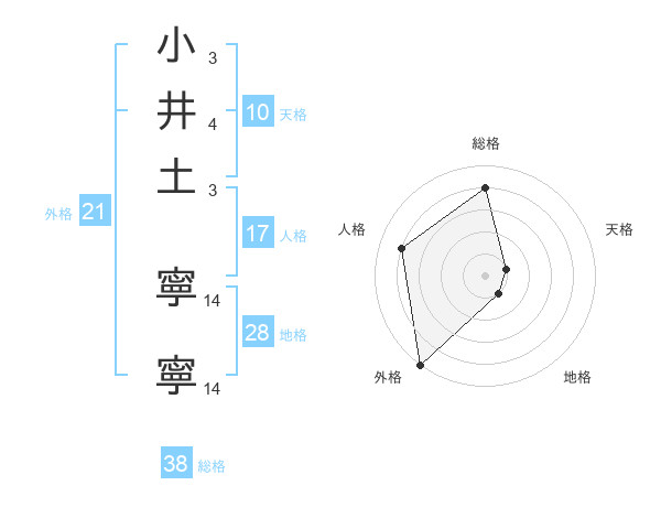 小井土 寧寧さんの総格は38画の4点!