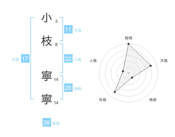 小枝 寧寧さんの総格は39画の5点!