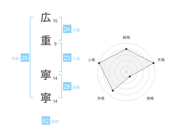 広重 寧寧さんの総格は52画の4点!