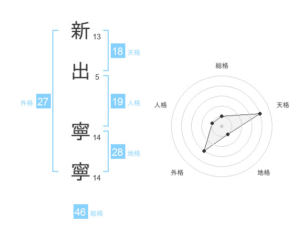 新出 寧寧さんの総格は46画の1点!