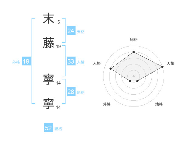 末藤 寧寧さんの天格は24画の5点!