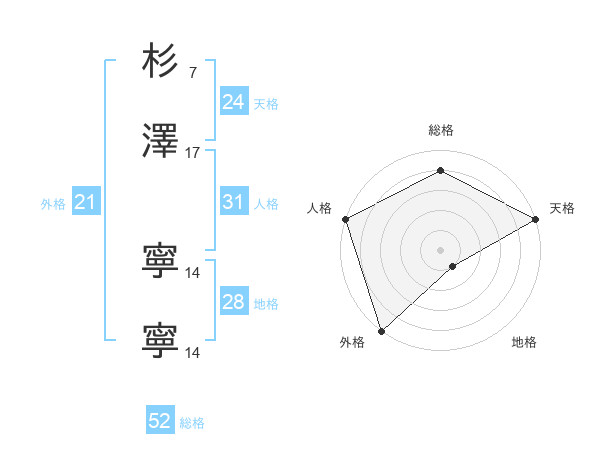 杉澤 寧寧さんを姓名の画数から五運を鑑定