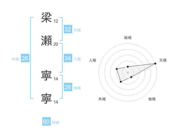 梁瀬 寧寧さんを姓名の画数から五運を鑑定