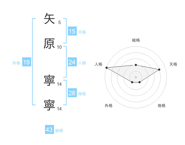 矢原 寧寧さんの天格は15画の4点!