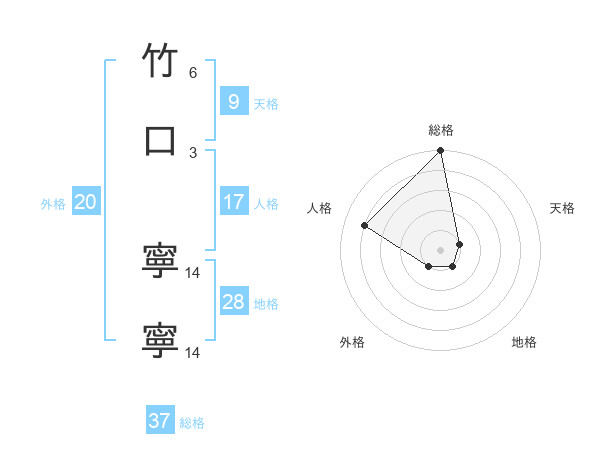 竹口 寧寧さんの総格は37画の5点!