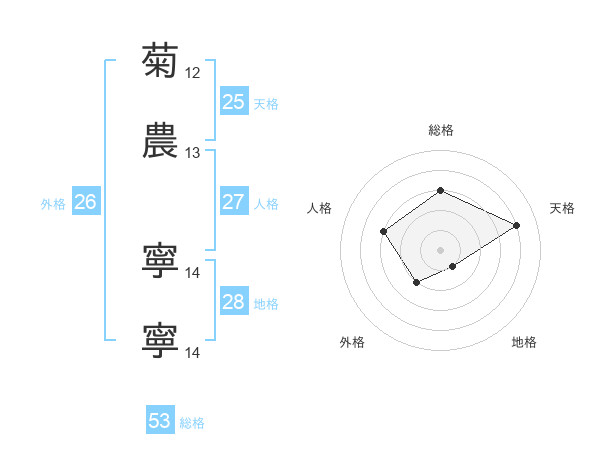 菊農 寧寧さんを姓名の画数から五運を鑑定