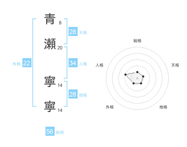 青瀬 寧寧さんの総格は56画の1点!