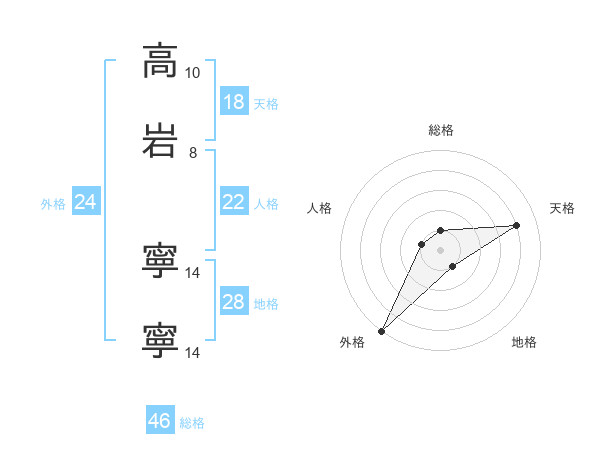 高岩 寧寧さんの天格は18画の4点!