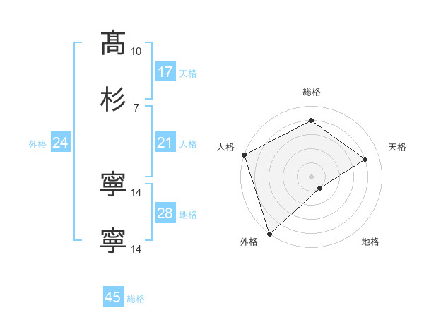 髙杉 寧寧さんの天格は17画の4点!