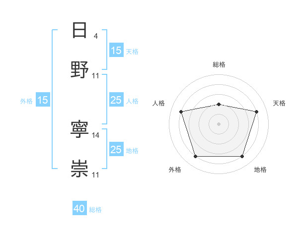 日野 寧崇さんの総格は40画の2点!