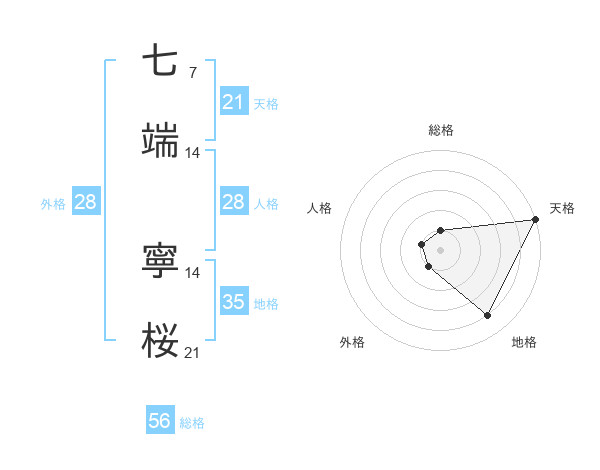 七端 寧桜さんの天格は21画の5点!