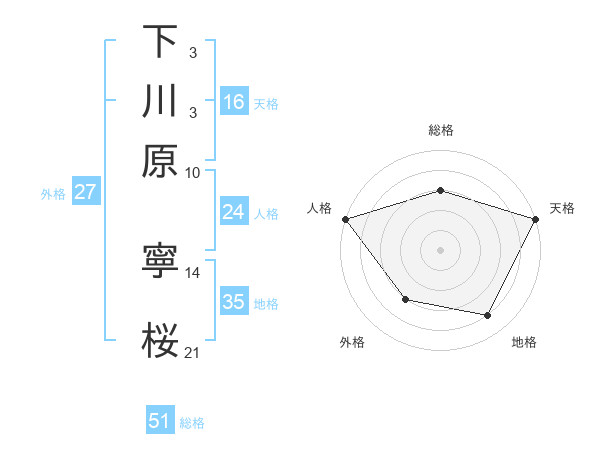 下川原 寧桜さんを姓名の画数から五運を鑑定