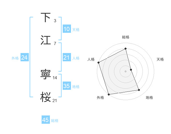 下江 寧桜さんを姓名の画数から五運を鑑定