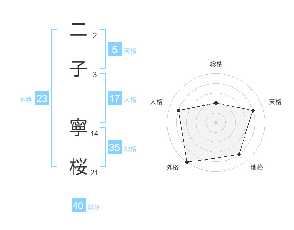 二子 寧桜さんを姓名の画数から五運を鑑定