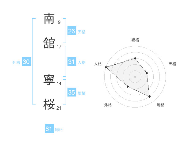 南舘 寧桜さんを姓名の画数から五運を鑑定