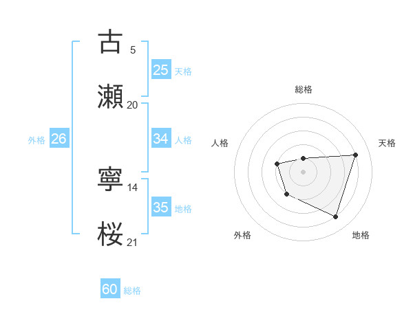 古瀬 寧桜さんの総格は60画の1点!