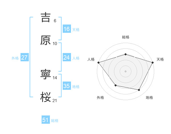 吉原 寧桜さんを姓名の画数から五運を鑑定