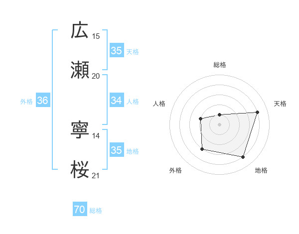 広瀬 寧桜さんの天格は35画の4点!