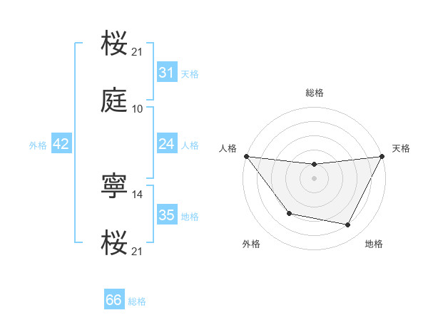 桜庭 寧桜さんの天格は31画の5点!