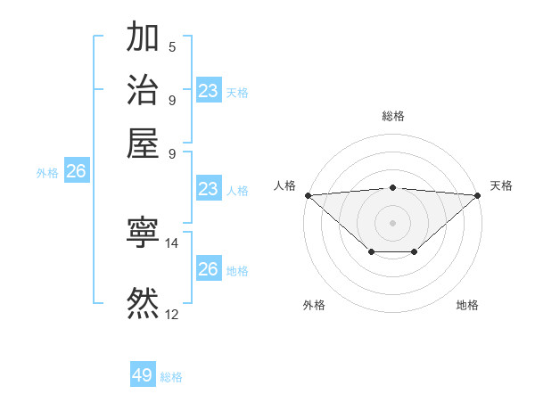 加治屋 寧然さんの天格は23画の5点