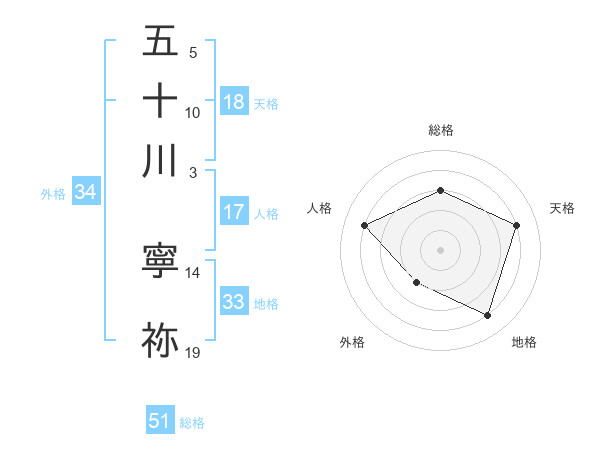 五十川 寧祢さんを姓名の画数から五運を鑑定