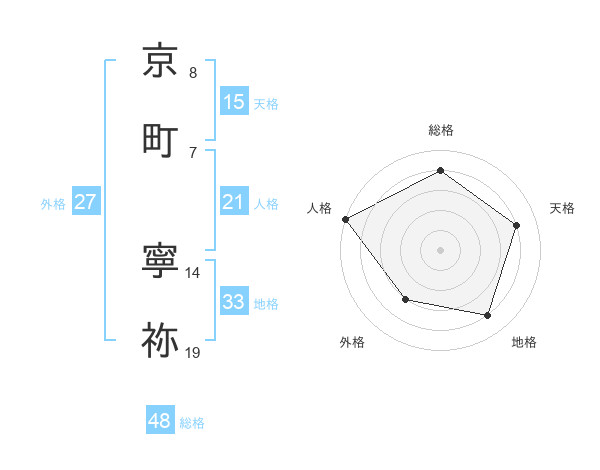 京町 寧祢さんの天格は15画の4点!
