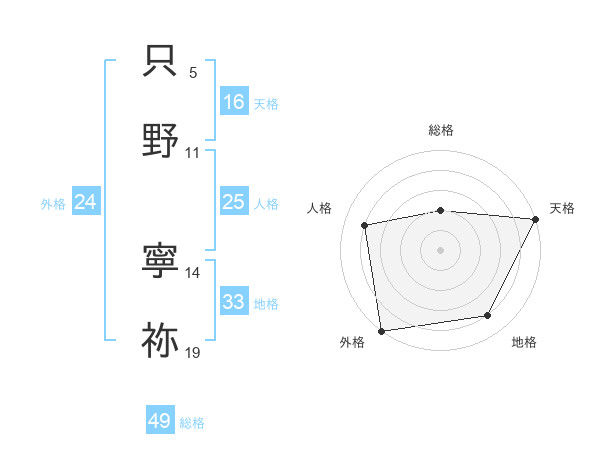 只野 寧祢さんの総格は49画の2点!