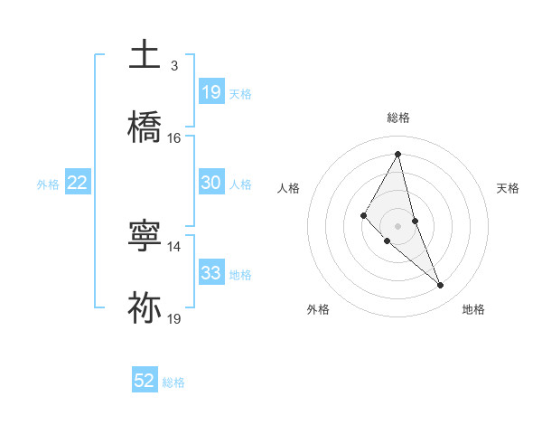 土橋 寧祢さんの総格は52画の4点!
