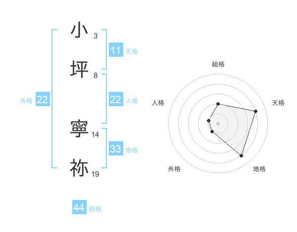 小坪 寧祢さんの総格は44画の2点!