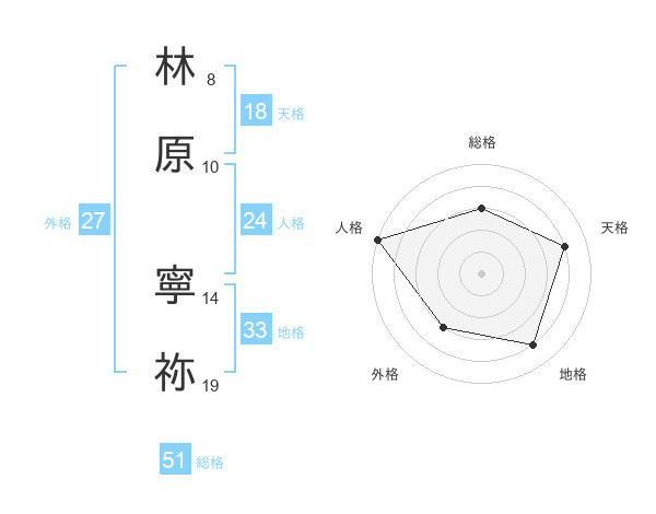 林原 寧祢さんの総格は51画の3点!