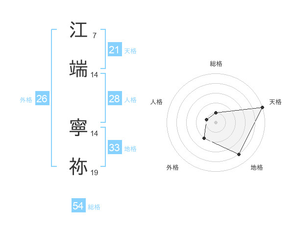 江端 寧祢さんの天格は21画の5点!