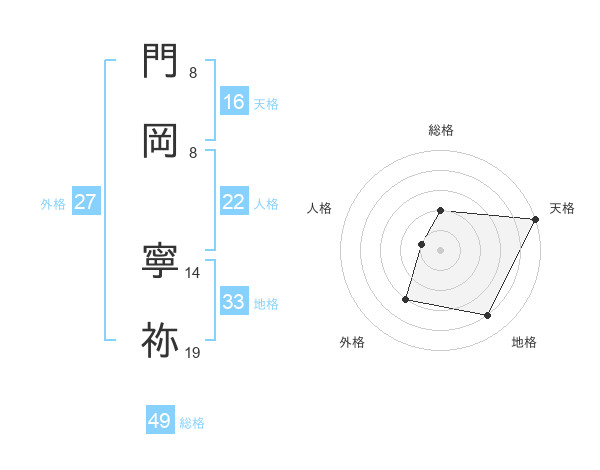 門岡 寧祢さんの天格は16画の5点!