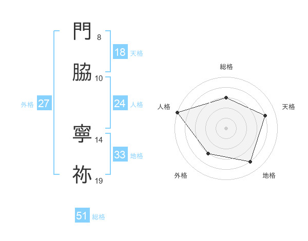 門脇 寧祢さんの総格は51画の3点!