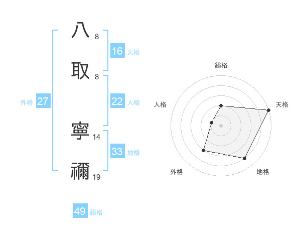 八取 寧禰さんを姓名の画数から五運を鑑定