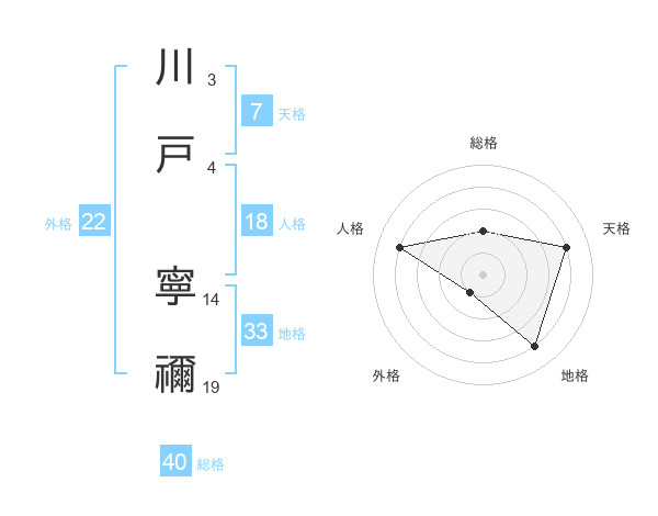 川戸 寧禰さんの外格は22画の1点!