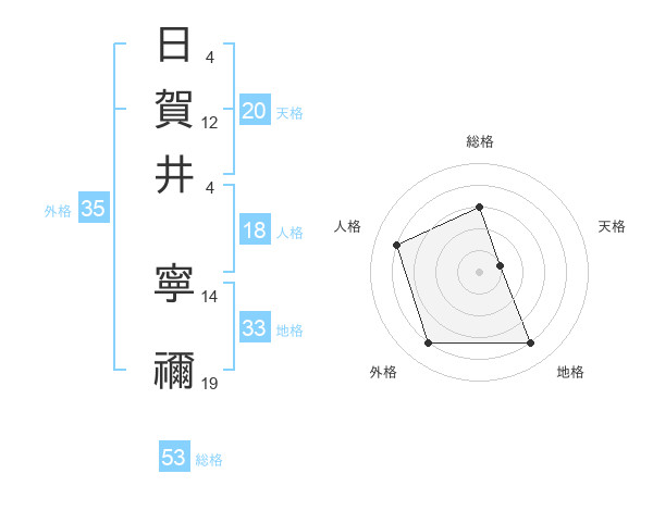 日賀井 寧禰さんの総格は53画の3点!
