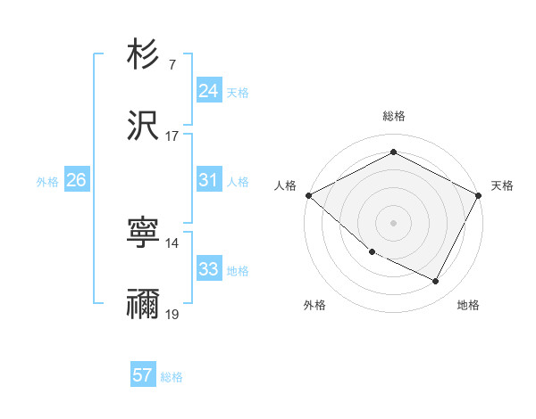 杉沢 寧禰さんを姓名の画数から五運を鑑定