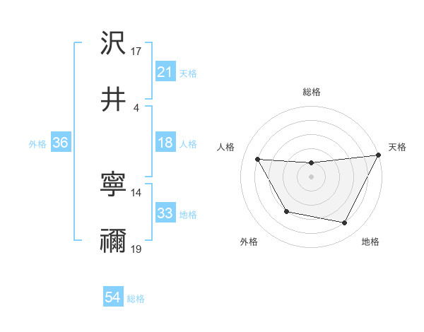 沢井 寧禰さんの総格は54画の1点!