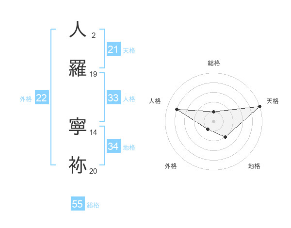 人羅 寧袮さんの天格は21画の5点!