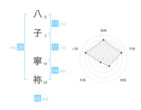 八子 寧袮さんの総格は45画の4点!