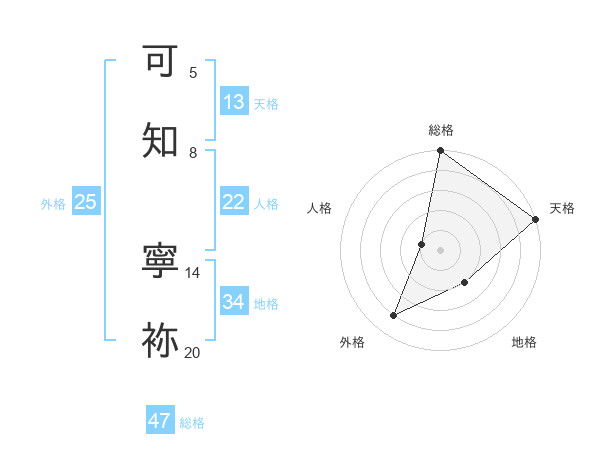 可知 寧袮さんの総格は47画の5点!